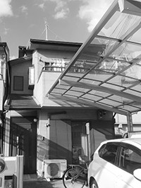 2台分の駐車場を確保するため、南側をセットバックし耐力壁を設けた耐震補強を行いました。