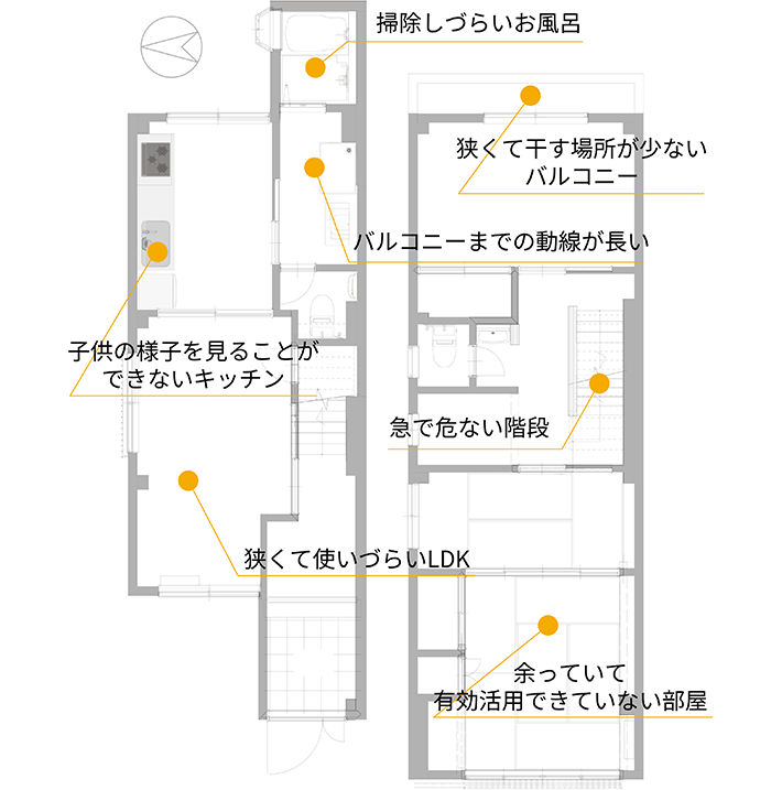 奥様は、自分好みの内装デザインと間取りではないことに、不満と使いにくさを感じておられました。