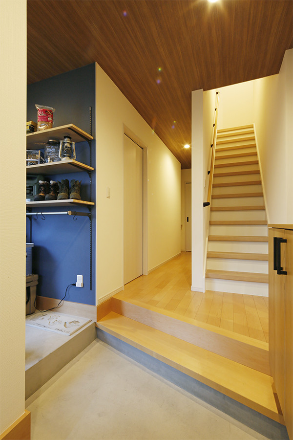 玄関横の収納にはアウトドアグッズや自転車を入れても十分広く使い勝手がよく、
