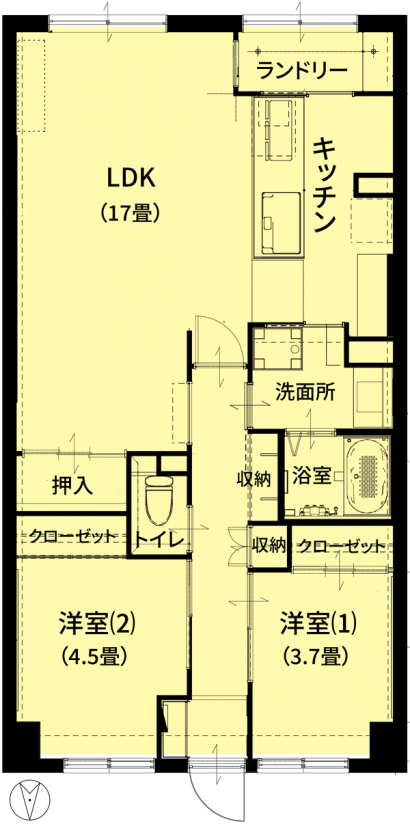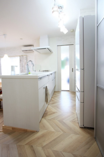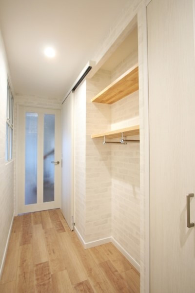 「花粉症がひどく、室内で物干しをする部屋が欲しい…。」とのご要望にお応えし、キッチン横に物干しスペースを設けました。