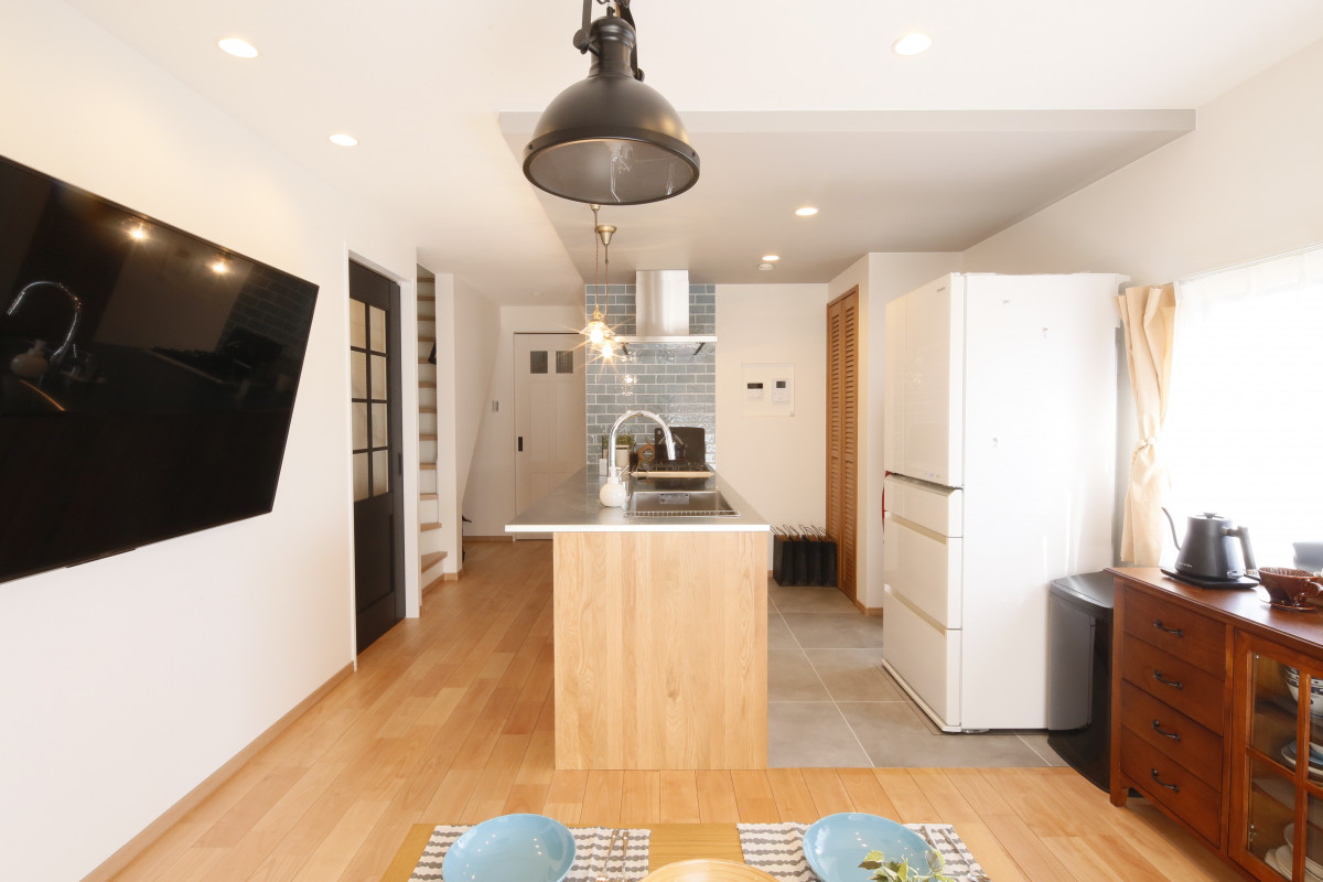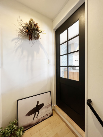 キッチンで提案していただいたブルーのタイルがお気に入りです。天井にグレーの壁紙を貼ることで空間に変化が生まれ、収納の扉もルーバードアを提案していただいたことで自分たちが思い描いていた理想の空間になりました!