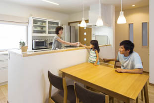 家族が快適に暮らせるよう、床には無垢のフローリングを提案したり、要望の対面キッチンもリビングを通ってお部屋に入る間取りにしたことで、家族のコミュニケーションが取れるLDKにしました。収納に関しても白い扉にしたことで、圧迫感のない広々としたLDKを実現しました。