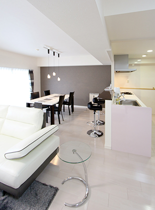 「白を基調としたシンプルなLDK。そして、その空間に合うような家具を置きたい」というH様。