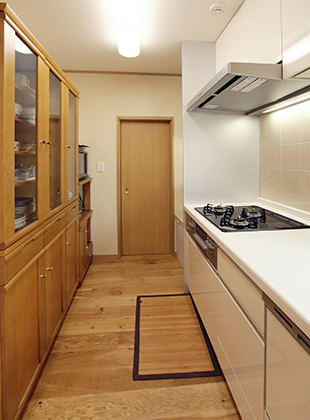 【収納】キッチン横収納は木目の扉をご提案し、ナチュラルに。