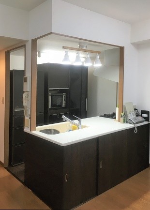 内装込み金額:¥1,570,000-(天井・壁:下地・クロス貼り替え、キッチンカウンター収納造作、照明新設)