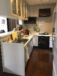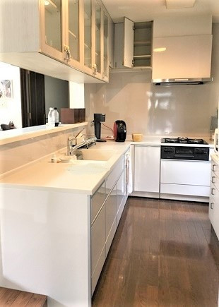 (天井・壁・床:既存、踏み台造作工事(無垢材)、キッチンパネル下地工事)