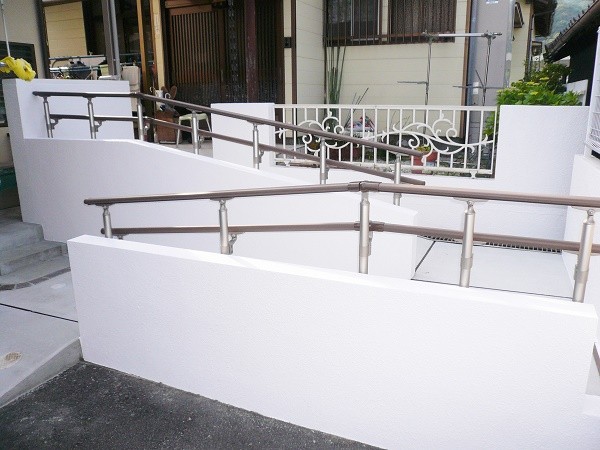 手摺:LIXIL(既存門扉、塀解体→スロープ新設、塗装、手すり取付)