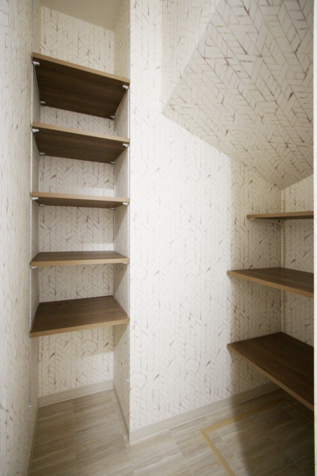 階段下の空間を利用し、造作の可動棚設置し収納力UP!