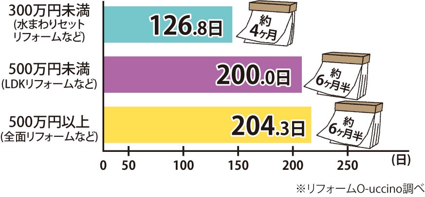 下のグラフは情報取集からリフォーム工事完了までの日数を表したグラフです。