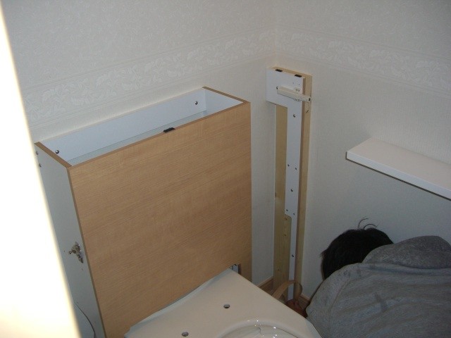 次にタンクを収納家具風の板材で覆います。