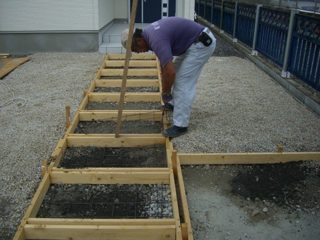①型枠+メッシュ筋で耐久性のある踏み石をつくります。