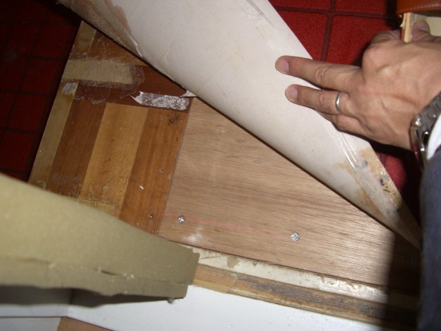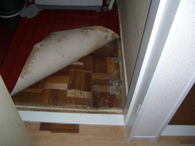 床のシートをめくると床の木材が変形して盛り上がっていました