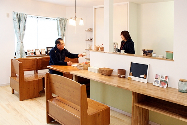 カウンターや棚を塗装した後の雰囲気がどうなるかがイメージできなくて不安でしたが、実際に現場で色を確かめながら進めて頂いたので、塗り終わった時にはとても良い雰囲気になり、喜んでいます!