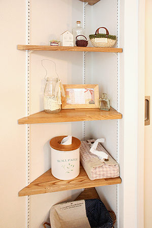 また、壁の三角のスペースに棚を付けたことで、小物を飾ったりできるので嬉しいです。