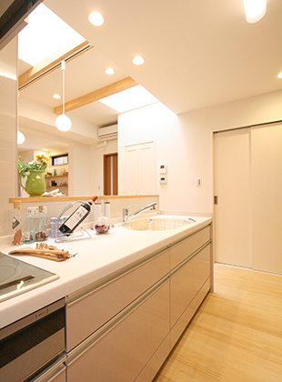 息子様ご家族が来た時でも、家族の顔を見ながら料理できる対面キッチンに。