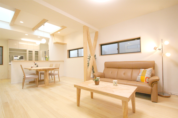 【LDK:天窓】隣接した家もあり暗かった家の中も、天窓を設けることで光の入る明るいLDKに。