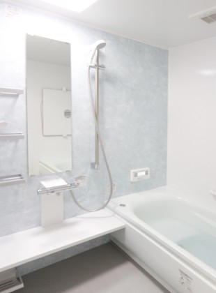 タイル→ユニットバス/UB:TOTO サザナ Sタイプ 1616サイズ/手すり、スライドバー取り付け/収納棚