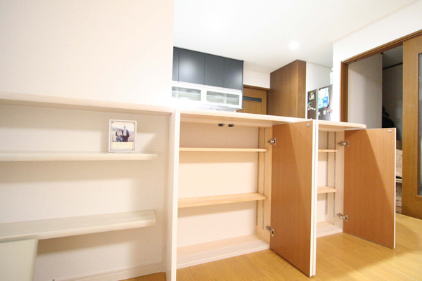 以前は食器で溢れていたキッチンも、造作したキッチンカウンターに収納出来るのでスペースを有効に使える空間に。