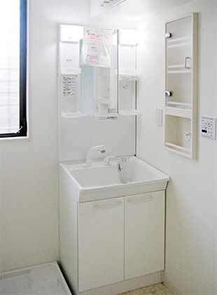 (床:下地・クッションフロア貼り替え、壁・天井:下地・クロス貼り替え/アッパーキャビネット×2/洗濯機置き場移設)