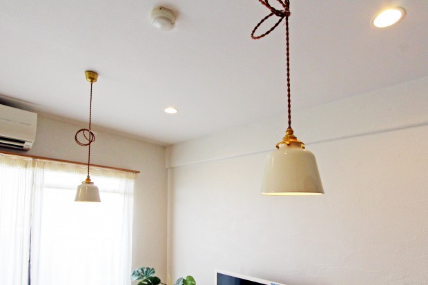 テーブル上に一灯ペンダントライトがくるように配置し、角度によって色々な光が楽しめる空間です。
