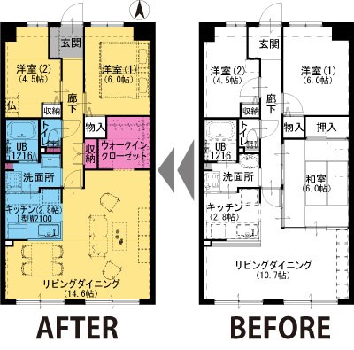 また、扉は開き戸から片引き戸に変更することで、収納を使いやすく、ベッド等を置いても出入りしやすいように。(写真右)