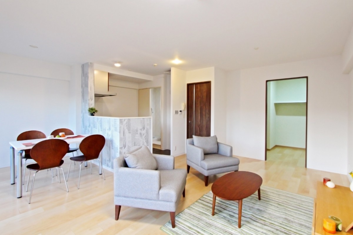 【LDK】元々の和室をリビングに取り込み、キッチンとの壁を無くした広々とした開放的なLDK空間に。