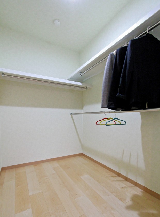 リビングの一角にウォークインクローゼットを設け、ご夫婦の洋服をたくさん収納可能に。