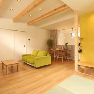 家族の団らんを楽しめるレモンイエローが眩しいナチュラルハウス