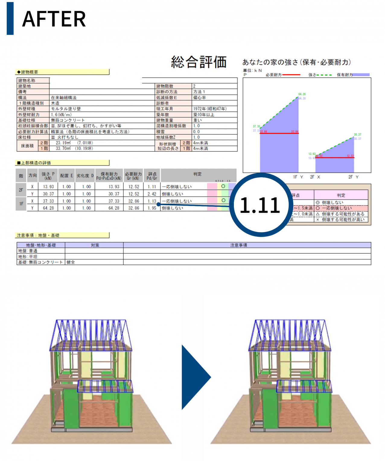 耐震評点1.0まで耐震補強を無料で行っております(1階部分のみ)