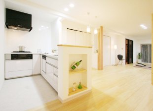 ■施工内容 /パナソニック3点セット・キッチン:リビングステーションSクラスL型2250×1650/UB:ココチーノSクラス1216/洗面台:MラインW750/トイレ:INAX・アメージュVシャワートイレ/床:無垢パインフローリング/天井・壁:クロス/玄関収納取付/バルコニー取付/収納造作/屋根葺き替え/外壁塗装