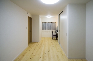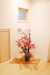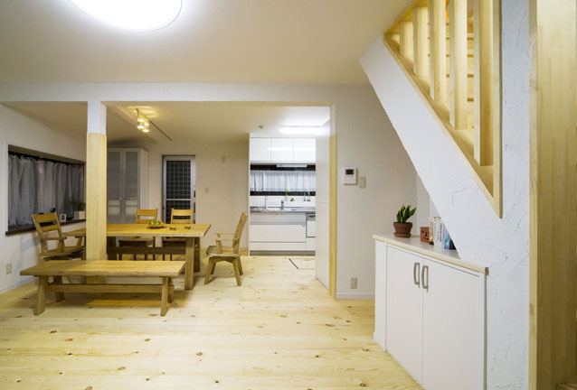 自然素材を取り入れて、広くて明るいLDKをお願いしました。また和室ももっとモダンな雰囲気にしたいと希望していました。玄関にも花を飾れるようなスペースができ、とてもうれしいです。ありがとうございました。