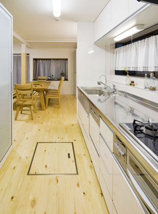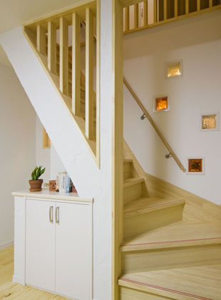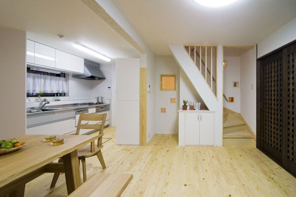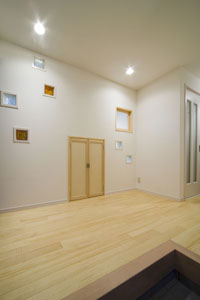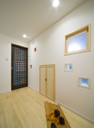 この度はありがとうございました。ご家族が長い時間を過ごされるLDKには壁には珪藻土、床には無垢材を使用し、また玄関との壁にはガラスブロックと明かり窓をいれ湿度調節と採光と風通しがよい空間となりました。