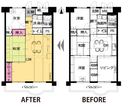 築30年以上になるマンションは狭く区切られ、家族が集まられたときに狭苦しく感じたり、部屋に光が入らないと悩まれていたN様。