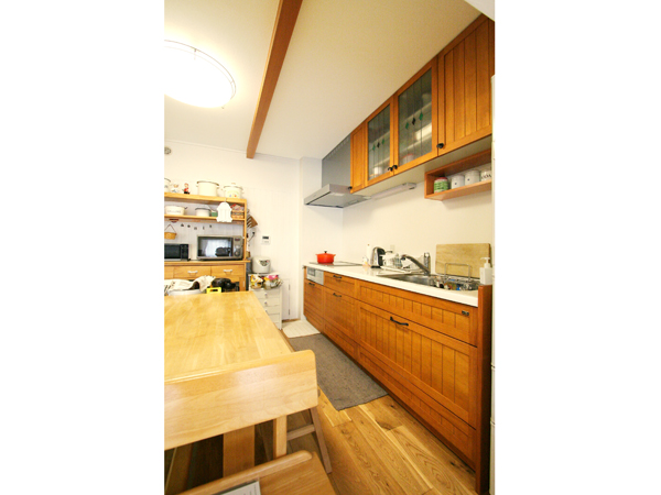 キッチンにもお客様のこだわり無垢材を提案。LDK全てに木の良さを取り入れた空間に。