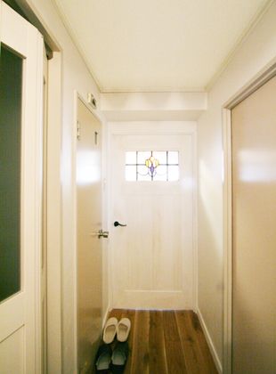 扉にステンドグラスを入れ、光の差し込む空間に。