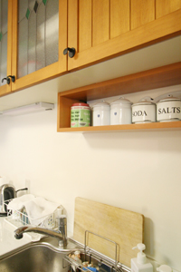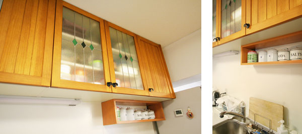 愛着があるところにこだわりたいと追加でステンドグラスの棚をプラス。機能性に優れたかわいらしいキッチンに。