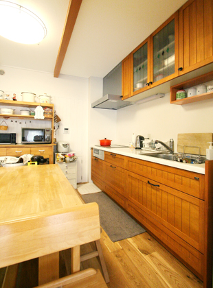 現在使ってない部屋の壁を取ってもらったことで、光の入る明るい空間になりました。雑誌のイメージにと、床は無垢材にしていただき、他にも壁やキッチンもこだわり、とてもお気に入りのLDKになりました。