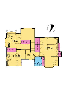 【子供室】収納は、アクセントとしてブルーの壁紙を提案。