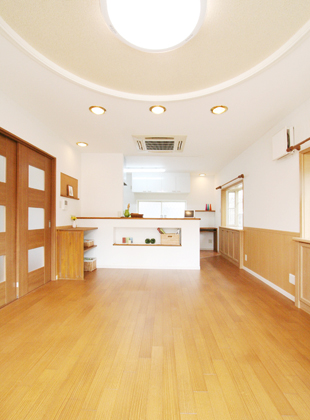 リフォームするにあたり、「おしゃれで機能的な家」にしたいと、内装を新しく、収納を充実させてほしいと伝えさせていただきました。機能的な部分はあらかじめお伝えしていた部分でしたが、おしゃれの部分では、LDKスペースに絵などを飾れるニッチを作ったり壁を丸くしたりなど提案してもらいました。思いもつかなかった提案が、今ではとてもお気に入りのポイントになっています。