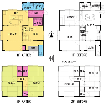 H様のお住まいは老朽化による外観のひび割れや水廻りのリフォームをしたいという事でお話しを頂き、リフォームするならキッチンスペースも使用しやすく、リビングも今より広く、明るくしたいというご要望でした。