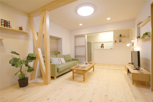 全室に無垢材を使い、また、リビングには珪藻土といった自然素材を使用していますので身体にも優しくワンチャンも安心です。