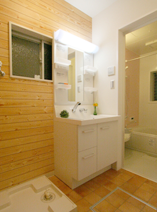 ■施工内容 /キッチン:LIXIL アミィI型2250/UB:LIXIL ラ・バス 1216サイズ/洗面化粧台:LIXIL オフトW750/床:無垢フローリング/天井:クロス/壁:珪藻土、クロス/サッシ取替え/棚、キッチンカウンター、カウンター収納造作/屋根葺き替え、外壁塗装/