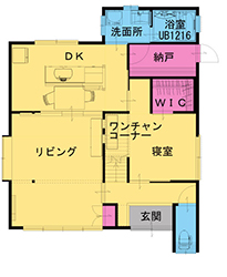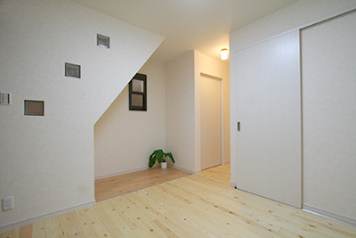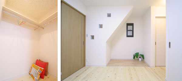 ミニチュアダックスを飼っているので階段下収納だった部分にクッションフロア敷いたワンチャンスペースを造って頂き寝室で一緒に寝ています。