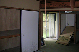 窓際に置かれたミシン台から、先生である奥様が生徒の方を見渡せ、窓からの光で生徒の方も明るく作業が出来ます。納戸側の壁はクロスを貼り、教室側の既存の聚楽壁とは違った表情が窺がえます。