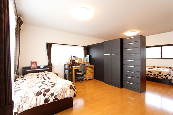 お子様が将来、独立した時のことも考慮し、1つの部屋を家具で2つの部屋として利用できるよう提案。