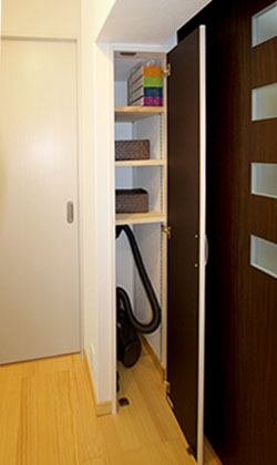 頻繁に使用される靴を収納できるよう、小さな空間も有効に活用。