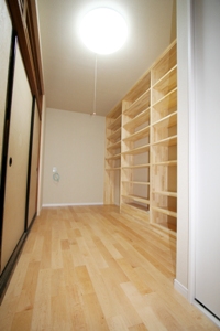 収納は靴や傘、ゴルフバックや帽子などをしまえるような収納を希望されていました。コート等の衣服も十分に入る、大容量の壁面収納で物が多くなりがちな玄関もすっきりと片付きます。