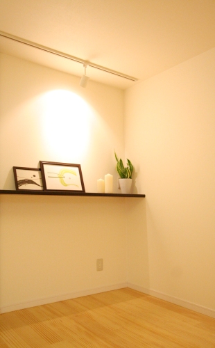 息子様のコレクションを飾るため、化粧梁を渡し、四方をスポットで照らせるようにしました。