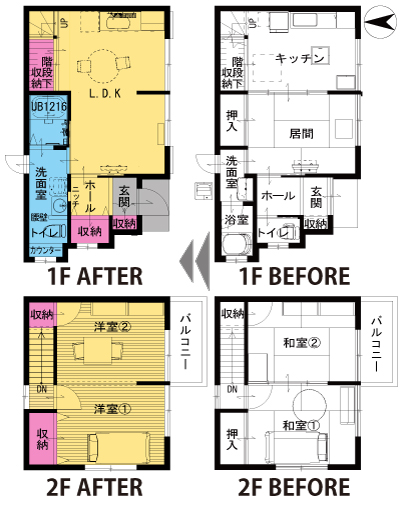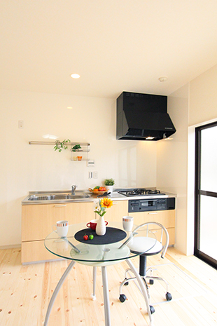 ■施工内容 /キッチン:Housetec エクセリアW Ⅰ型2100/UB:Housetec コキュアスSE 1216/洗面化粧台:ジャニス工業 サークルラインW600/トイレ:既存移設/床:無垢フローリング、クッションフロア―/壁・天井:クロス、洋室天井既存/ニッチ、収納、収納棚、カウンター造作/外壁塗装/