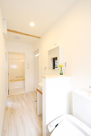 もともとのお家を生かし、木目調でスッキリと和に馴染ませる空間をご提案。またメインで過ごすLDKからサニタリーへ直接行ける動線にし、快適に過ごせるようご提案しました。